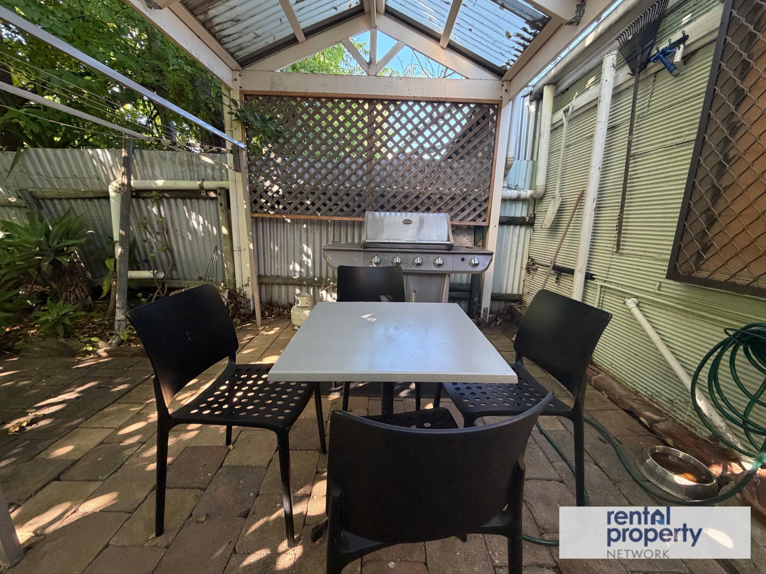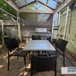 – Quaint undercover entertaining area with BBQ, outdoor setting and rear gate access